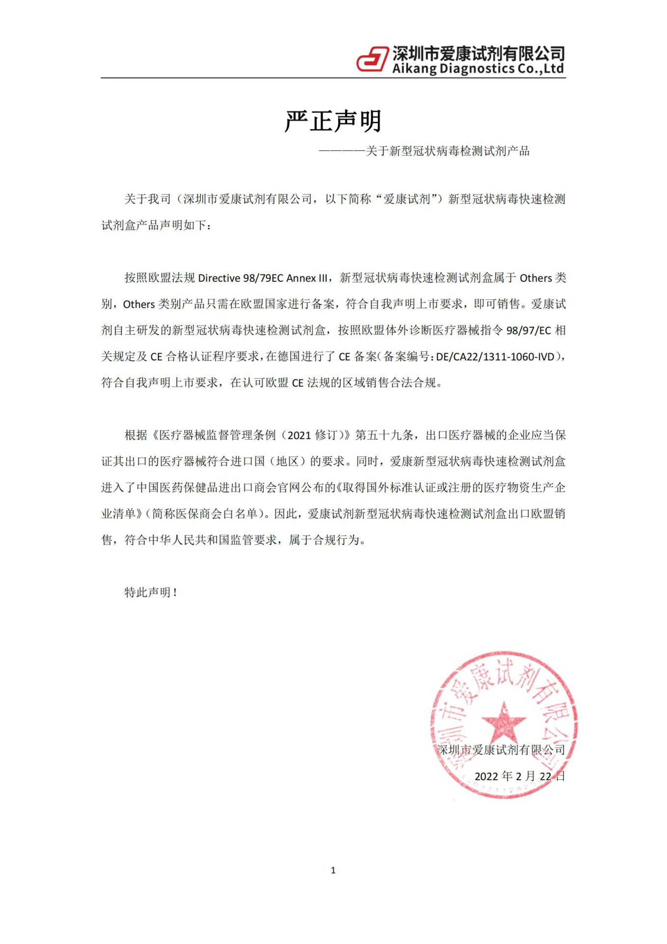 严正声明 —关于新型冠状病毒检测试剂产品
